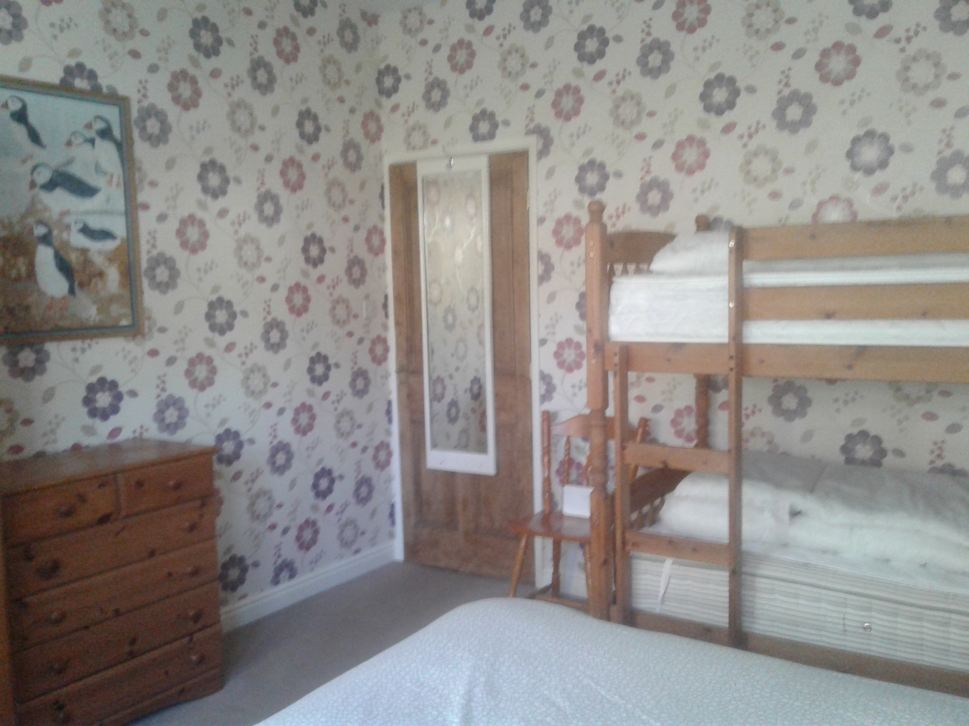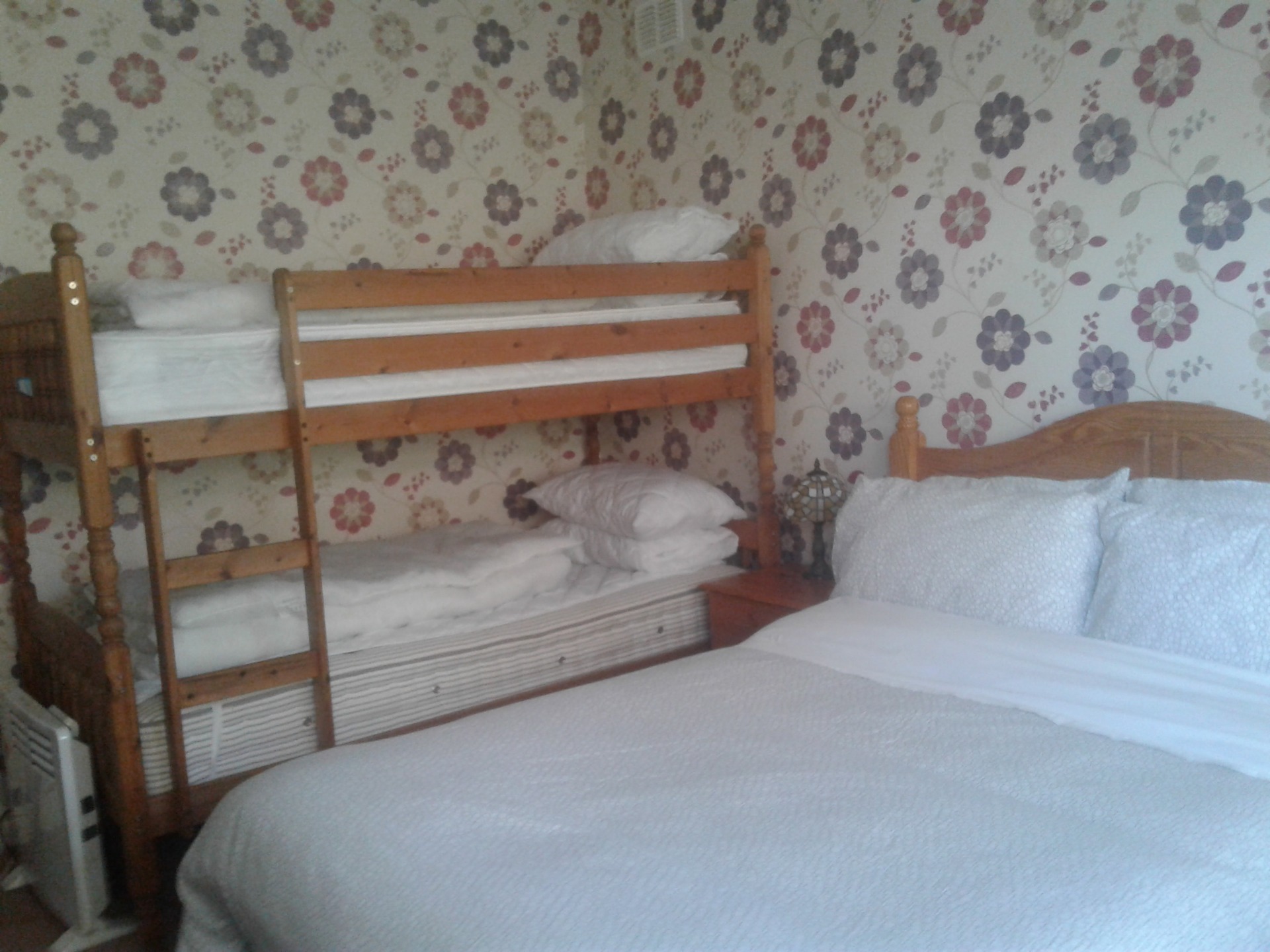 The family room has a comfortable double bed together with a pair of bunk beds. There is a tv in here too.