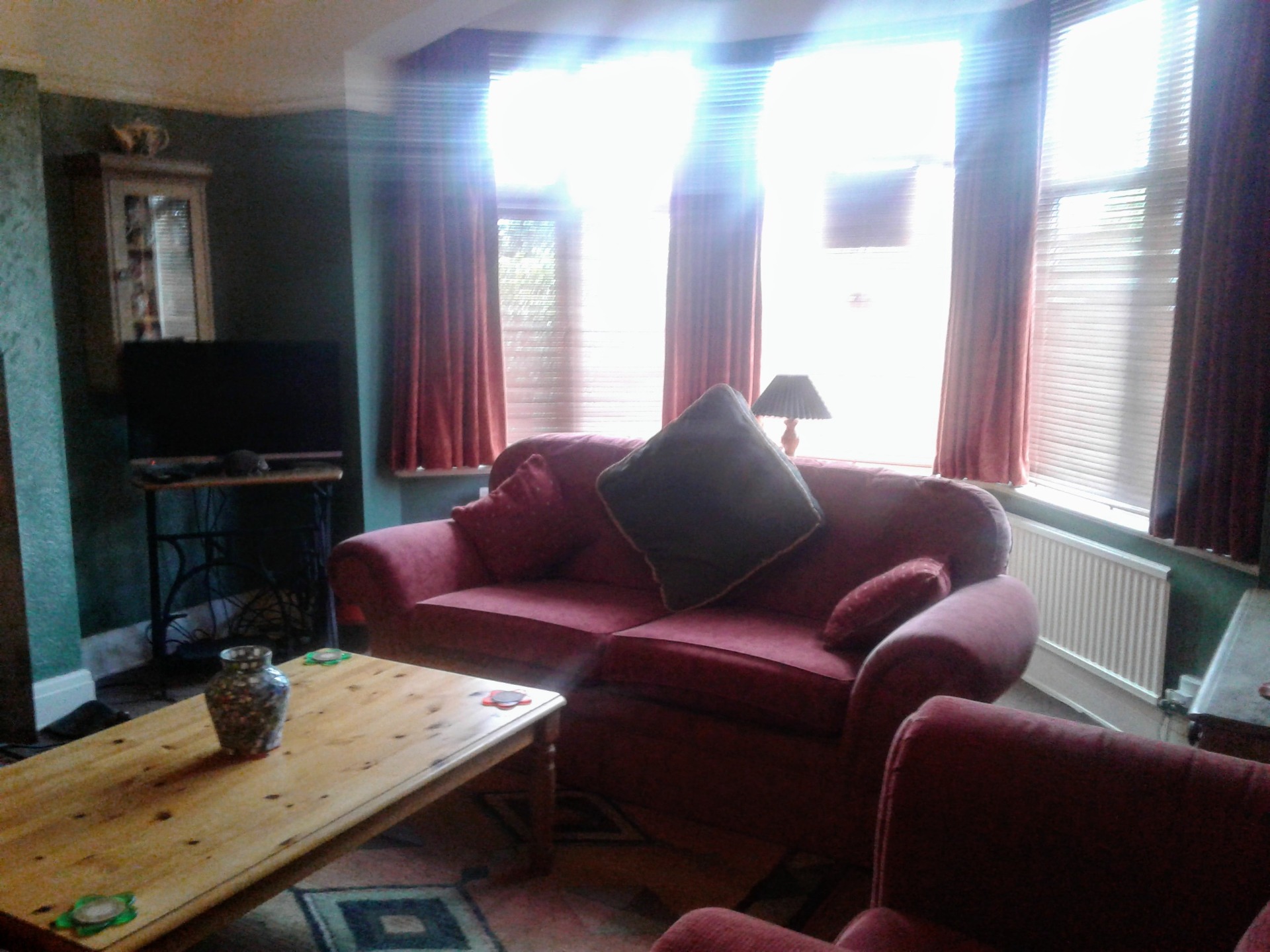 Containing 2 large sofas and an armchair, the living room is the perfect place to sit back and relax. The triple bay window is great for watching the world go by, and when you have had enough of that the tv has BTtv and Netfix